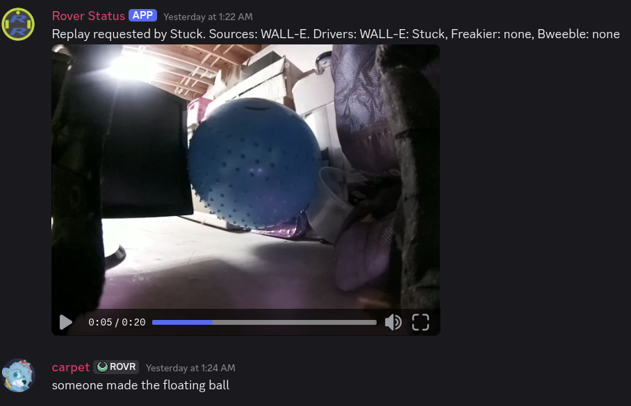 | 2026-02-10 07:12:09 5f1bfb | carpetfuzz | Rovers/Freaky (Roomba) (Aka Freakier) rovers/freaky (roomba) (aka freakier)/image-1770703075986.png rovers/freaky (roomba) (aka freakier)/image-1770703155738.png rovers/freaky (roomba) (aka freakier)/image-1770703223722.png | Renamed Freaky (Roomba) (AKA Freakier) to Rovers/Freaky (Roomba) (AKA Freakier). |