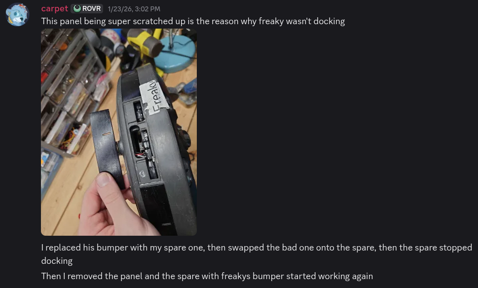 | 2026-02-10 07:12:09 5f1bfb | carpetfuzz | Renamed Freaky (Roomba) (AKA Freakier) to Rovers/Freaky (Roomba) (AKA Freakier). |
